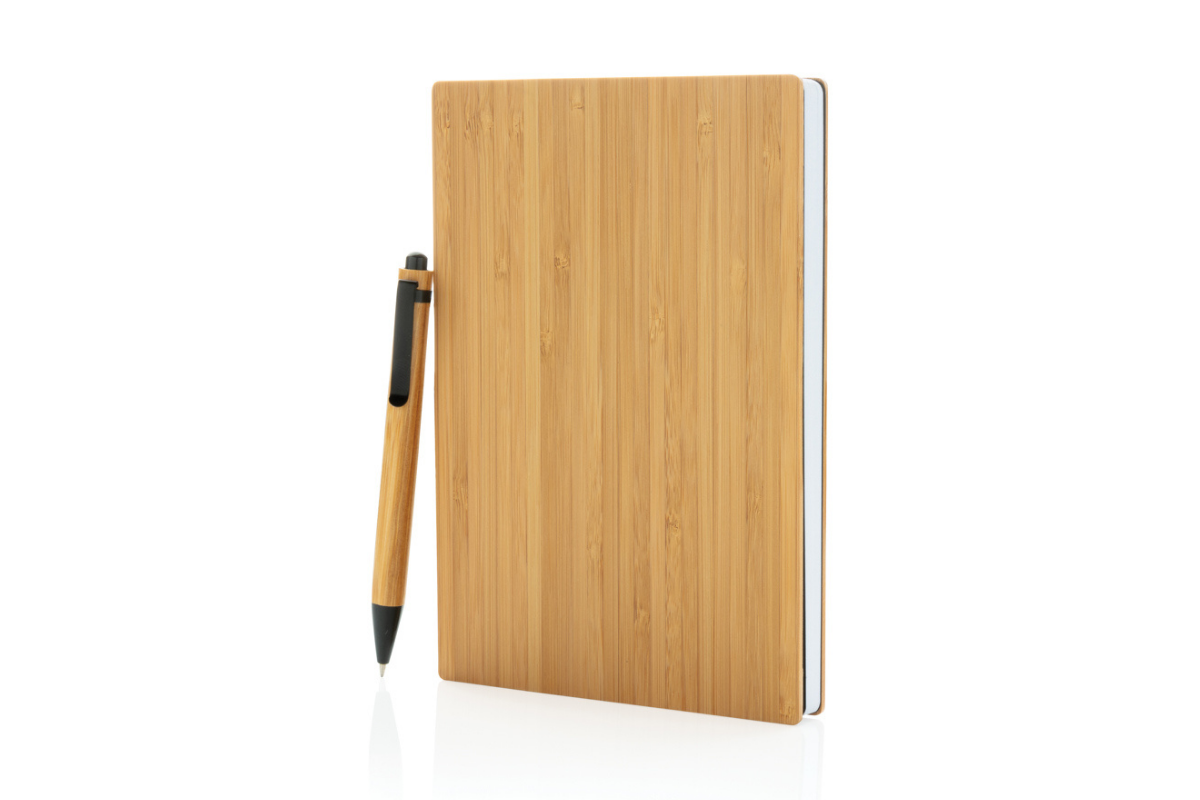Zápisník má obal vyrobený z udržateľného bambusu, ktorý dodáva produktu prirodzený a elegantný vzhľad. Vnútro obsahuje 90 listov (180 strán) recyklovaného papiera s gramážou 70 g/m², čo zabezpečuje pohodlné písanie a ekologický prístup k spotrebe papierových produktov. Stránky sú linajkované, čo je ideálne pre poznámky, plánovanie alebo pracovné zápisy.